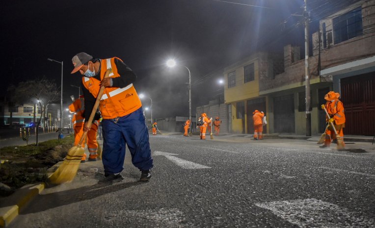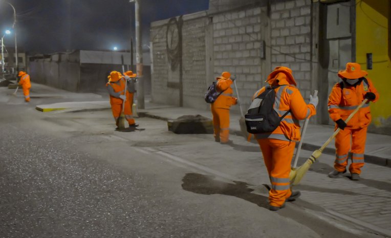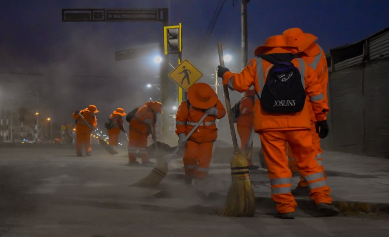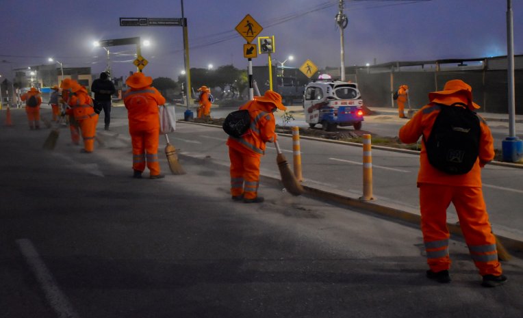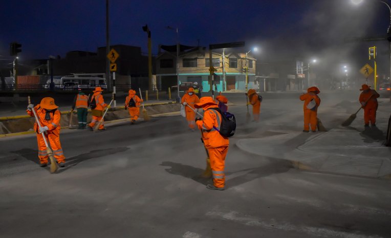Más de 60 trabajadores de limpieza recorrieron desde la av. Los Molles hasta av. Municipal para realizar el recojo de material, residuos y escombros hallados en la vía pública, muchos de ellos dejados por los vecinos.