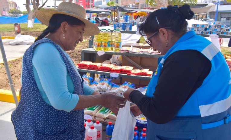 La actividad se desarrolló en la plaza Patricio Conti con participación de los vecinos quienes llevaron residuos sólidos segregados como cartón, plástico, caucho, latas, entre otros, para ser cambiado por productos de primera necesidad.