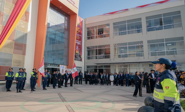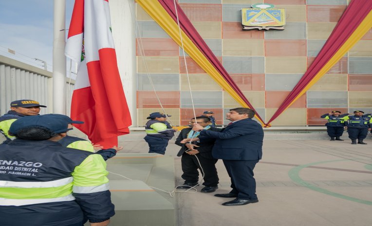 Con la participación de la banda de música de la I.E. Jorge Chávez y las escoltas de Seguridad Ciudadana y nuestra municipalidad, se realizó el acto protocolar con la presencia del alcalde distrital, regidores, gerentes, subgerentes y personal municipal.