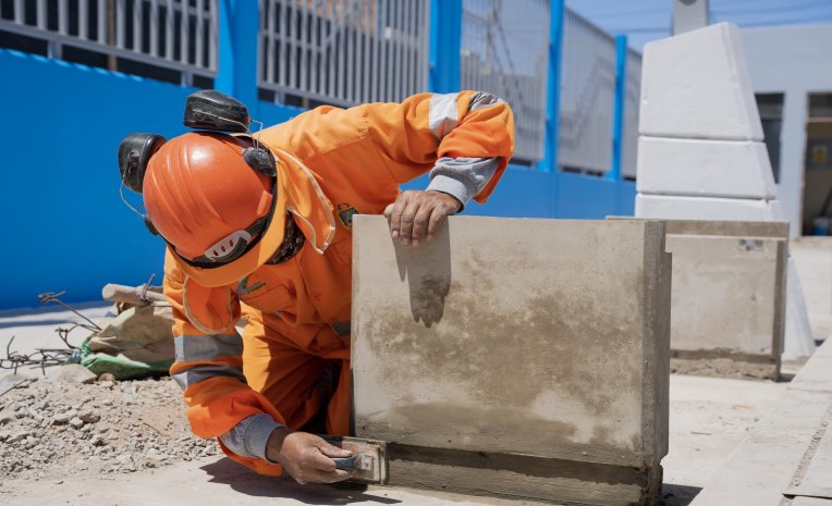El campo deportivo y losa multiusos de la Asoc. Las Palmas continúa con su renovación integral, presentando actualmente un 50 % de avance para beneficio de 200 familias.