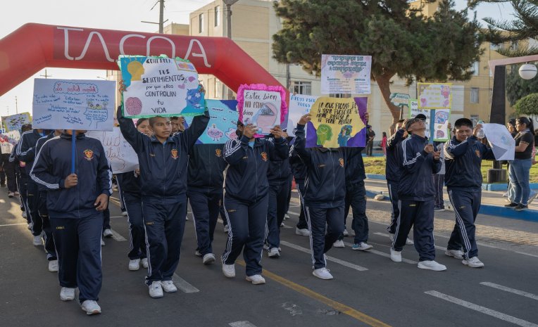 A través de la Subgerencia de Juventudes de nuestra municipalidad, escolares, instituciones públicas y gremios, participaron de la caminata convocada por el proyecto Tacna Sin Drogas. Al finalizar en la plaza Jorge Chávez, se realizó una ceremonia alusiva.