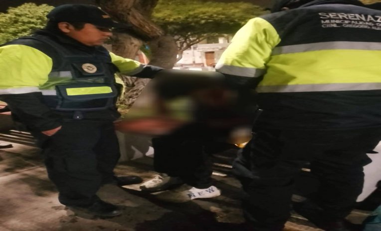 Agentes de Seguridad Ciudadana del distrito Gregorio Albarracín acudieron en ayuda de un joven que se encontraba recostado sobre una banca.
