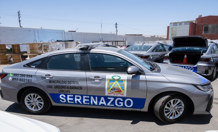 Ya se encuentran en nuestro distrito 14 autos patrulleros y 6 camionetas modernas para reforzar la seguridad ciudadana como parte del proyecto "Mejoramiento y ampliación del servicio de Seguridad Ciudadana local en los sectores del distrito Crnl. Gregorio Albarracín Lanchipa".