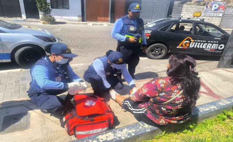 Agentes de Seguridad Ciudadana del distrito Gregorio Albarracín corrieron ante el reporte de una mujer herida en un despiste vehicular.